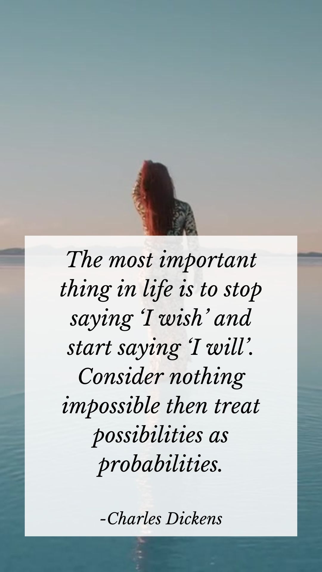 “The most important thing in life is to stop saying ‘I wish’ and start saying ‘I will’.”